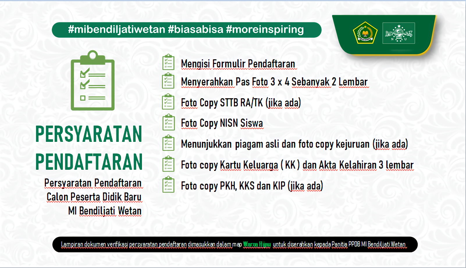 Proses pendaftaran PPDB Online MI BENDILJATI WETAN hampir selesai. Silakan periksa kembali data-data yang sudah anda masukkan.